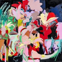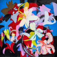 This group of seven explosive paintings reflect the beauty that, historically, women have been known to paint, flowers in particular. Women have been assigned flowers and landscapes as permissible for centuries. Hildebrand-Mills has always approached painting organically, the way the best abstract painting is executed. But her work, both in form and content, is volatile and dynamic, contradicting the placid, peaceful work that has been done by women in the past.
