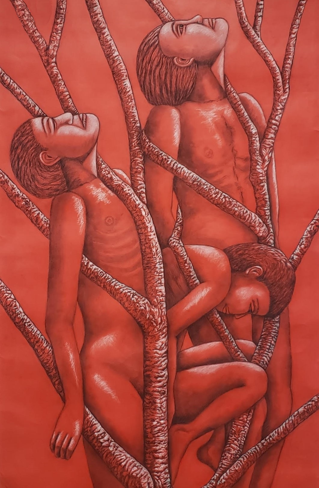 The figures in my work are often modeled on the people in my life. I create the rest of the images from the ideas that I carry inside me. The marriage between these two things, the inner and the outer, the spiritual and the material, is fundamental to my work. The process of creative thinking connects us to our inner most selves as well as to the cosmic energies of the world outside ourselves. My work expresses this connection.
