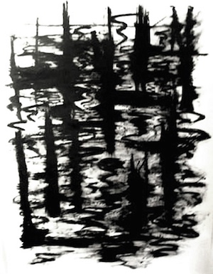 The New England drawings interrogate the boundary between what is seen and what is remembered. Mottau’s abstractions are not simply translations of landscape into line and gesture—they are fields of inquiry; surfaces where spatial memory and sensory immediacy collide. Through her assertive mark-making, Mottau disrupts the comfort of representation, compelling us to engage with the architecture of experience itself. The forms, suggestive, provide a rhythm of geological time. The design of the forest and swamp vines, and the persistent geometry of stone. Yet, it is in the tension between boldness and restraint that her work finds its eloquence. Each drawing becomes a meditation on the act of perception: the way memory fractures and reconstructs place, the way physical form is constantly reframed by the act of looking. The sense of monumentality here is psychological as much as physical. where abstraction of the landscape is never fixed but always becoming. In this sense, Mottau’s series is less about New England as a location than as a state of mind—a terrain mapped by memory, sensation, and the ongoing dialogue between observer and observed.