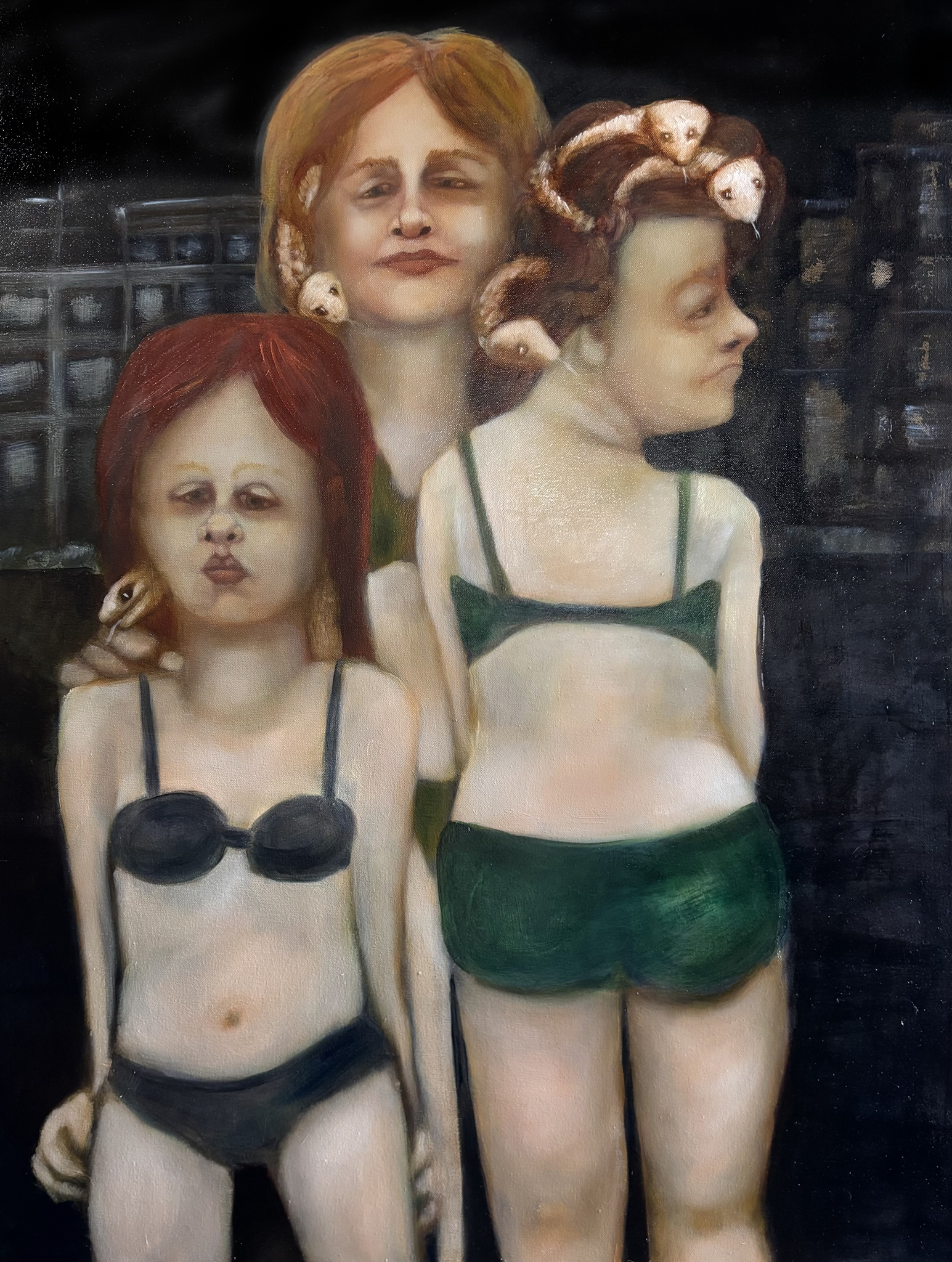 I create work that reflects on the world around me; it contemplates religious, historical and mythological women, personal histories, and the psychological undercurrents of contemporary society and is influenced by social realism, political art, and feminist art, and addresses the angst and trauma of modern America from a female perspective.