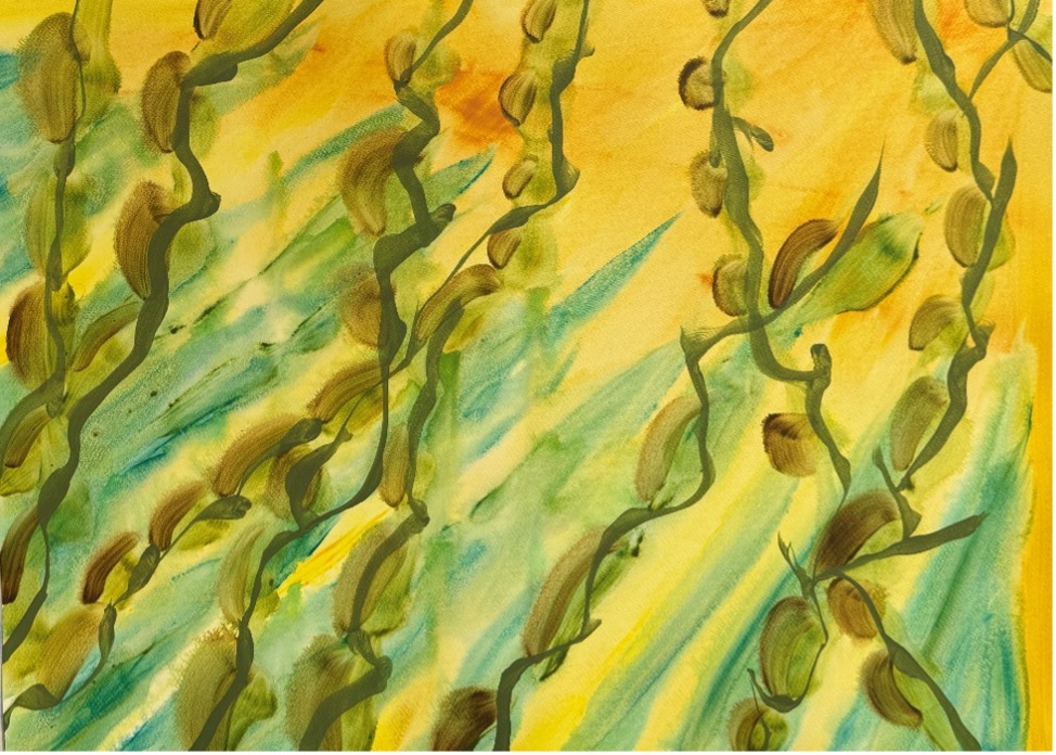 Carlyle Upson’s saturated paintings of kelp, seaweed and seagrass are inspired by the loose freeness of floating in the water – a sensation experienced through kayaking, snorkeling, scuba diving and swimming. This new work represents both an expansion and deepening of the artist’s approach, embodying immersion in nature.